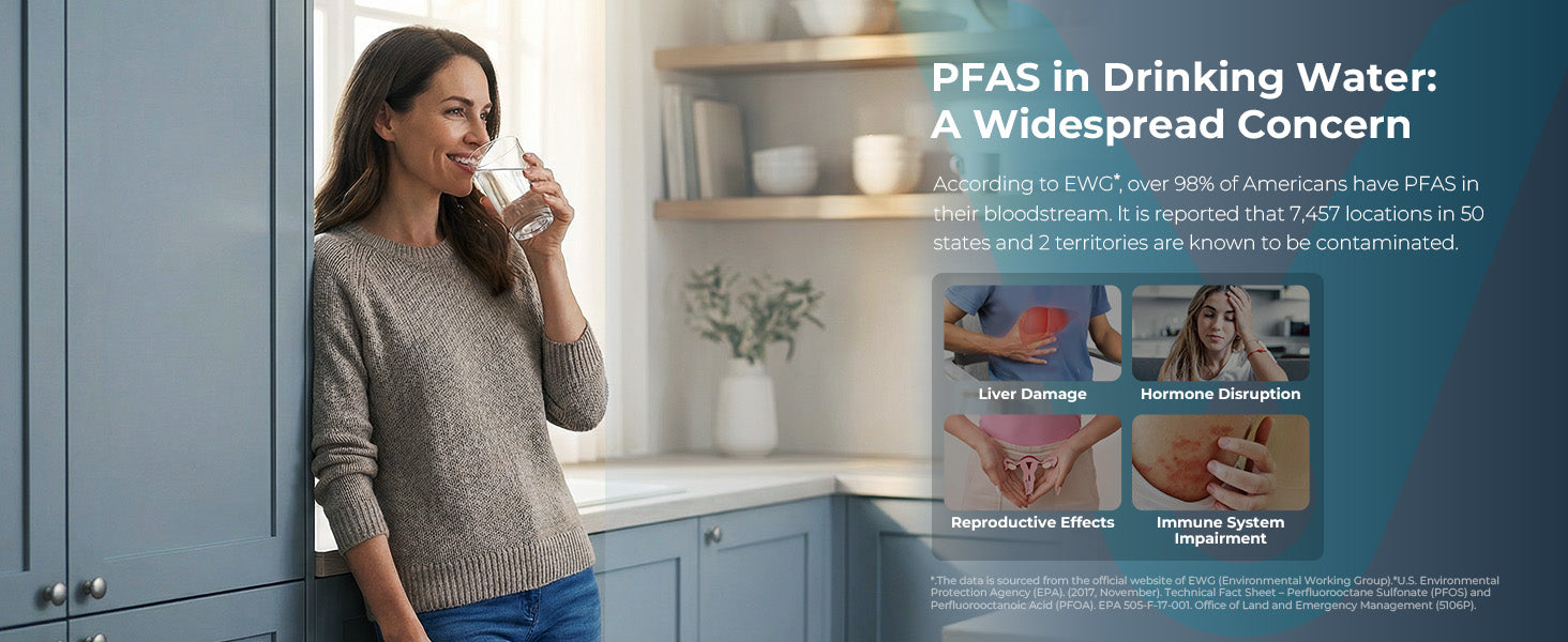 - 【𝐍𝐒𝐅/𝐀𝐍𝐒𝐈 𝟑𝟕𝟐&𝟓𝟑&𝟒𝟐 Standard Certified】Reverse osmosis system is against 𝐍𝐒𝐅 𝟑𝟕𝟐&𝟓𝟑&𝟒𝟐 & 𝐄𝐏𝐀 standard, certified by 𝐒𝐆𝐒 to effectively reduce 𝐓𝐃𝐒, hexavalent chromium, fluoride, lead, iron, cadmium, mercury, copper, selenium, barium, chloride, arsenic, chlorate, cyanide, sulfate, 𝐏𝐅𝐎𝐒, 𝐏𝐅𝐎𝐀 and particulates in tap water. TDS removal rate is up to 94.75%, and PFOS&PFOA reduce rate is up to 99.60%.