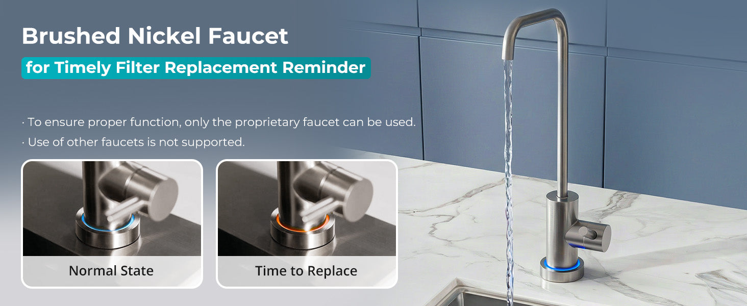 A: You don't have to guess. The system includes a smart LED faucet that automatically reminds you by turning orange when a filter replacement is due, making maintenance simple and worry-free.
